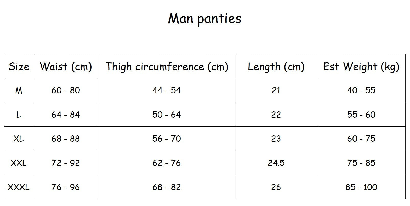 Size chart is for recommendation only.
